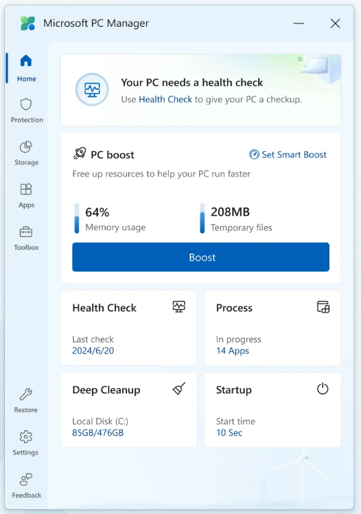 기존의 서드파티 PC 관리 프로그램을 사용하지 않아도 MS PC Manager 하나만 있으면 대부분의 관리 작업이 해결된다는 점이 가장 큰 장점이에요. 그렇다면 이제 MS PC Manager의 핵심 기능을 하나씩 살펴볼까요?